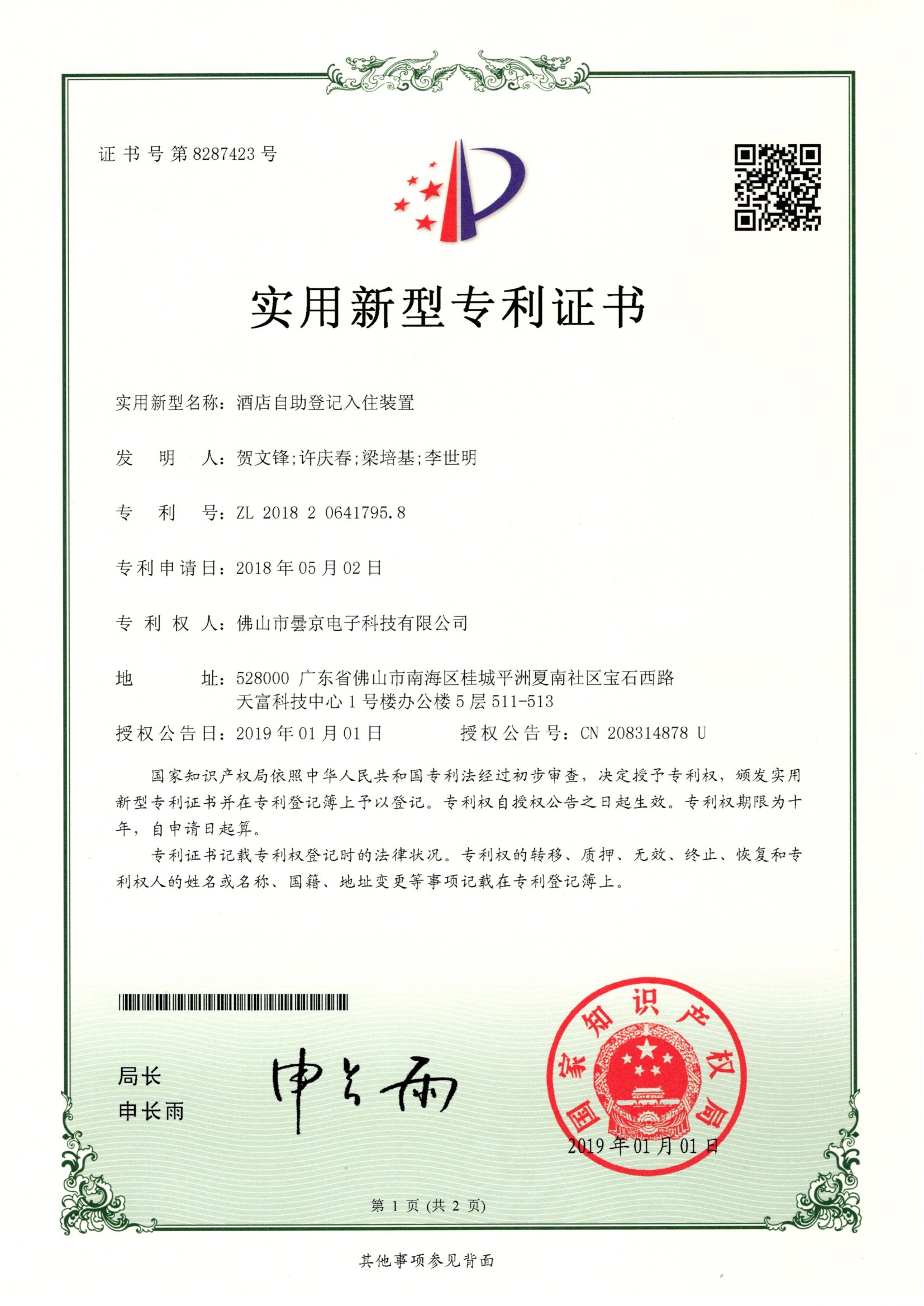酒店自助登記入住裝置